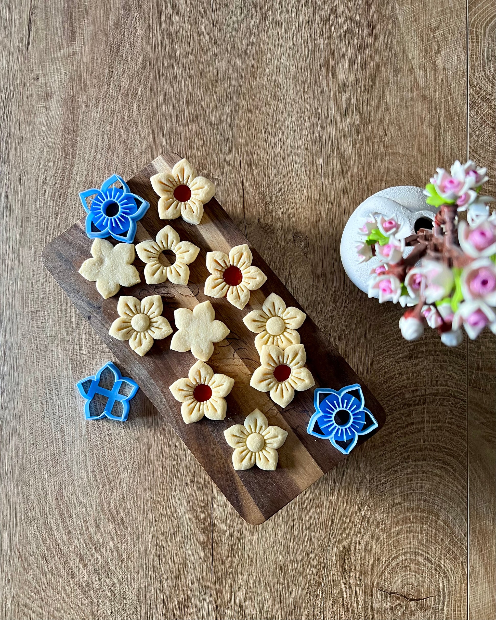 Unesite malo proljetnog duha u svoju kuhinju! Ovaj set se sastoji od tri izrezivača u obliku cvijeta: dva su savršena da se koriste zajedno za linzere, a treći za klasične keksiće. Idealni su za stvaranje dekorativnih kolačića za Uskrs ili jednostavno uz kavu na terasi.
