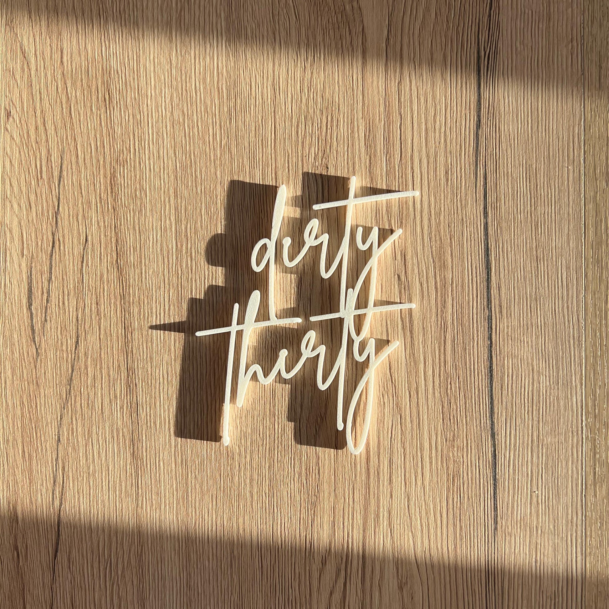 Proslavite 30. rođendan sa stilom uz naš ukras za tortu s natpisom "dirty thirty"! Ovaj elegantni i zabavni ukras savršen je dodatak za sve koji žele obilježiti ovaj poseban događaj. Za razliku od standardnih toppera, ovaj ukras dolazi bez štapića, pa ga možete kreativno prisloniti uz bočnu stranu torte ili ga pažljivo položiti na gornju plohu. Bilo da ga postavite na tortu ili uz nju, ovaj ukras će zasigurno biti hit na svakoj rođendanskoj proslavi!