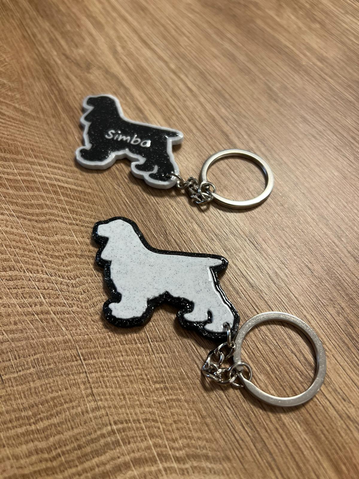 Privjesak u obliku koker španijela, 3D printan i premazan sjajnim završnim slojem koji mu daje glatkoću i poseban sjaj. Idealan dodatak za ključeve, torbu ili kao poklon za ljubitelje pasa. Sve dostupne kombinacije boja možete pronaći među fotografijama.