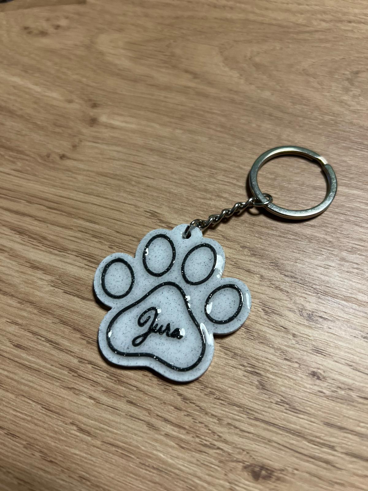 Privjesak u obliku šapice s imenom po naružbi, 3D printan i premazan sjajnim završnim slojem koji mu daje glatkoću i poseban sjaj. Idealan dodatak za ključeve, torbu ili kao poklon za ljubitelje pasa. Sve dostupne kombinacije boja možete pronaći među fotografijama. Molimo Vas da u polje za personalizaciju upišete ime koje želite na privjesku :)